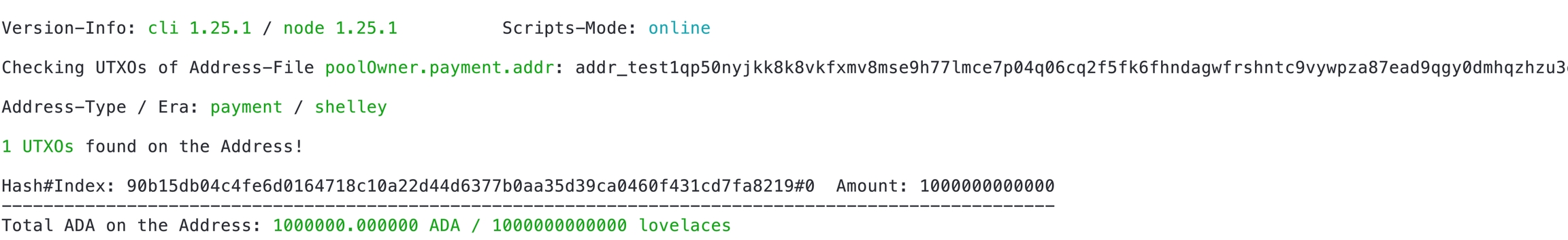 this will generate the poolOwner.deleg.cert before proceeding let's honor our pledge and send the pledged amount to poolOwner.paymet address, you can find the address where you have to send your funds in the poolOwner.payment.addr file