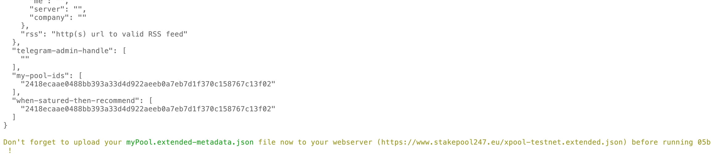 Don't forget to upload your myPool.extended-metadata.json file now to your webserver (https://www.stakepool247.eu/xpool-testnet.extended.json) before running 05b & 05c !