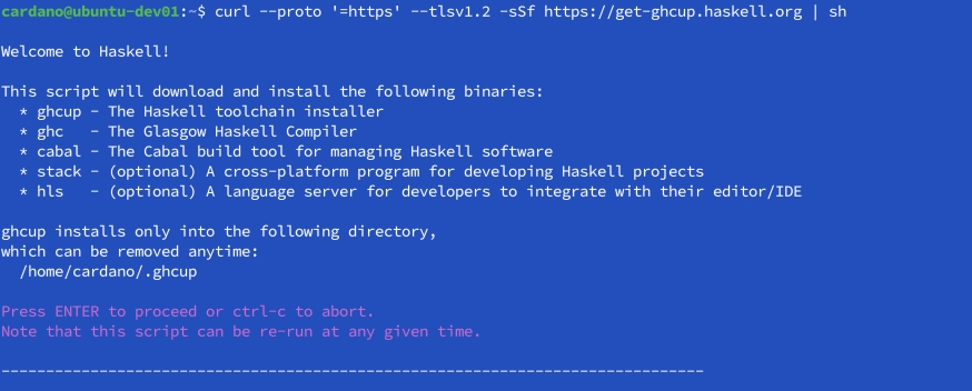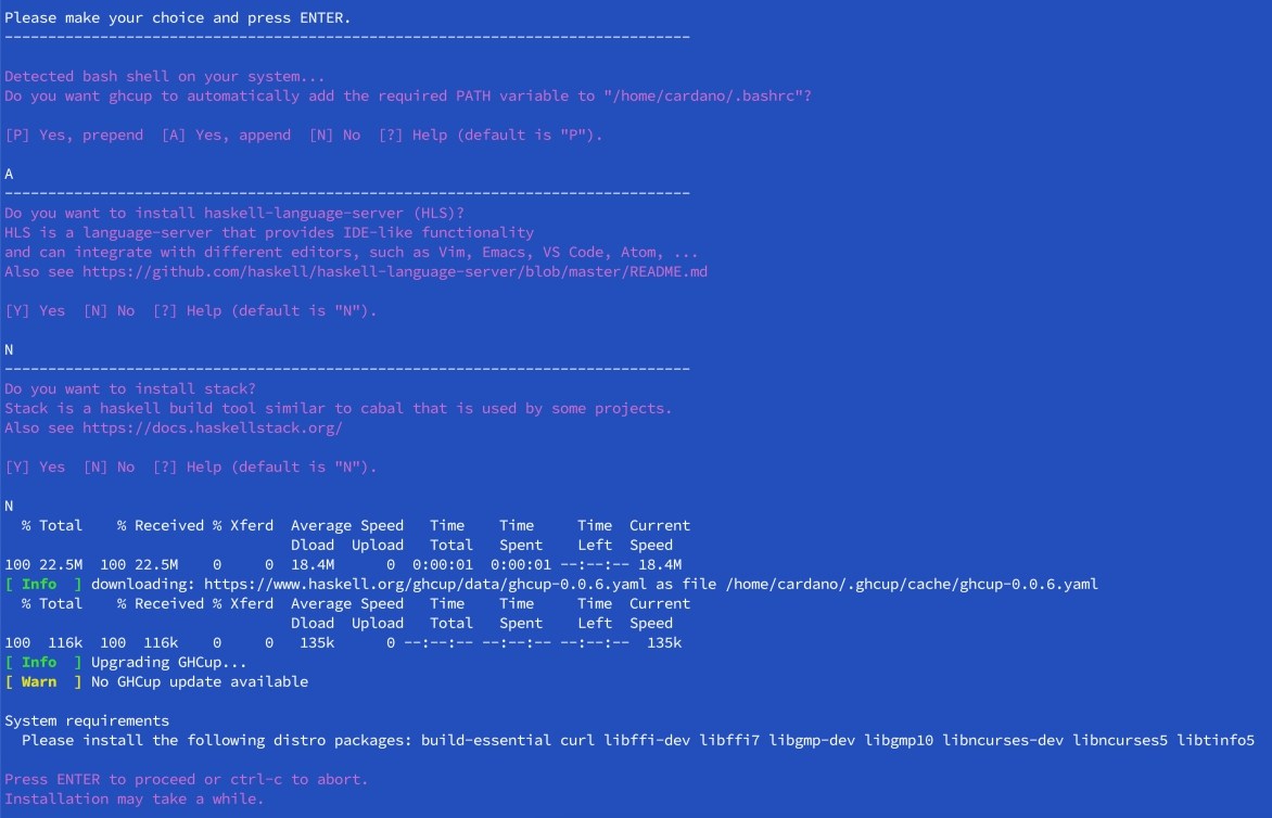 Let's move to the next step - installing GHC - the Haskell code compiler (Cardano node is based on the Haskell programming language).