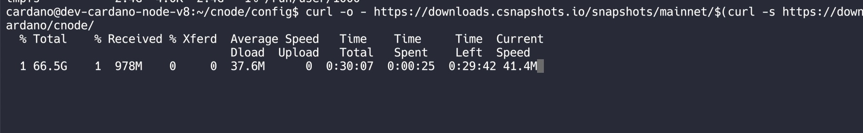 curl -o - https://downloads.csnapshots.io/snapshots/mainnet/$(curl -s https://downloads.csnapshots.io/snapshots/mainnet/mainnet-db-snapshot.json| jq -r .[].file_name ) | lz4 -c -d - | tar -x -C /home/cardano/cnode/curl -o - https://downloads.csnapshots.io/snapshots/testnet/$(curl -s https://downloads.csnapshots.io/snapshots/testnet/testnet-db-snapshot.json| jq -r .[].file_name ) | lz4 -c -d - | tar -x -C /home/cardano/cnode/