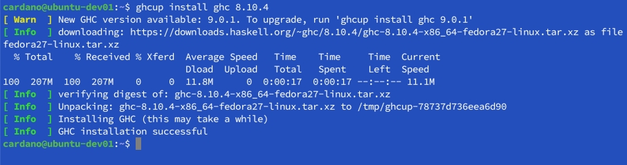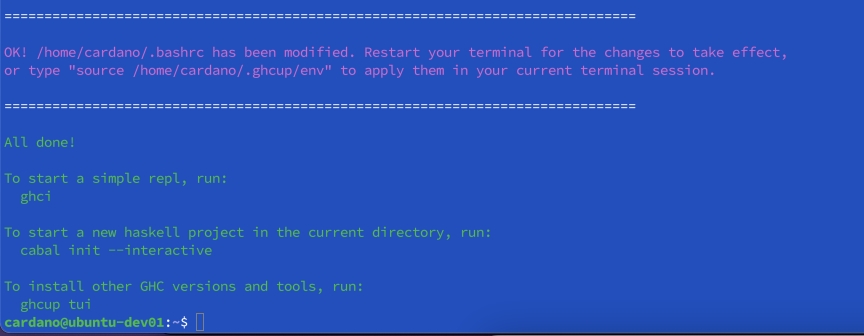 Let's move to the next step - installing GHC - the Haskell code compiler (Cardano node is based on the Haskell programming language).